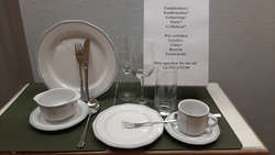 - schön gedecktem Tisch durch